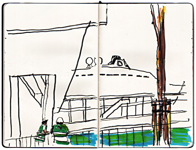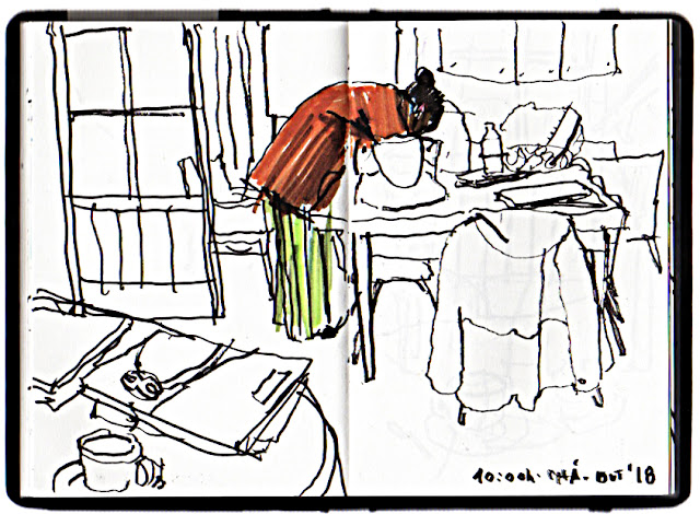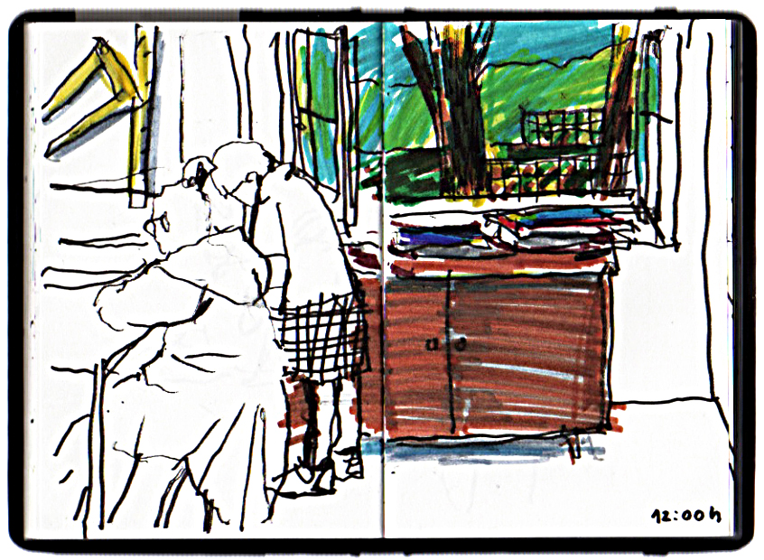 Agora que temos que estar sempre dentro de alguma bolha, desenhar dentro do carro é um velho hábito que voltou e aconselho. Por exemplo, as vistas múltiplas que são permitidas pelos espelhos retrovisores são sempre um recurso atraente.
